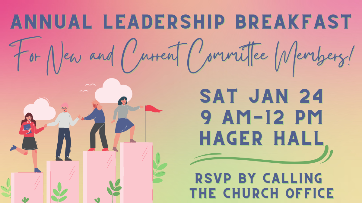 New to a committee? Currently serving on one and would like a refresher? Join us for our annual leadership breakfast on Saturday, January 24 from 9 am-12 pm in Hager Hall. This is a great time to enjoy some breakfast and get to know your fellow committee members!