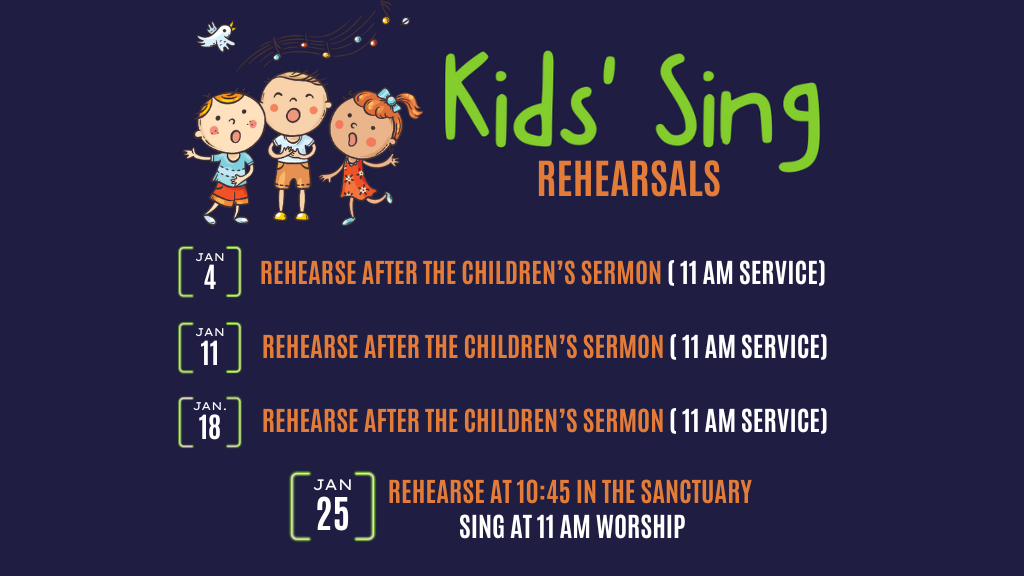We also gather for Children’s Church on Sundays during the 11 am service immediately following the children’s time in worship. Four months out of the year, we utilize the Children’s Church time for rehearsal for our Kids’ Sing.